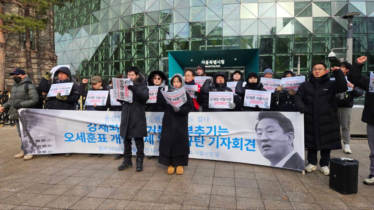 ▲ [기자회견] 강제퇴거, 주거불안 부추기는 오세훈표 개발규제 완화 규탄 기자회견(2026.01.19)